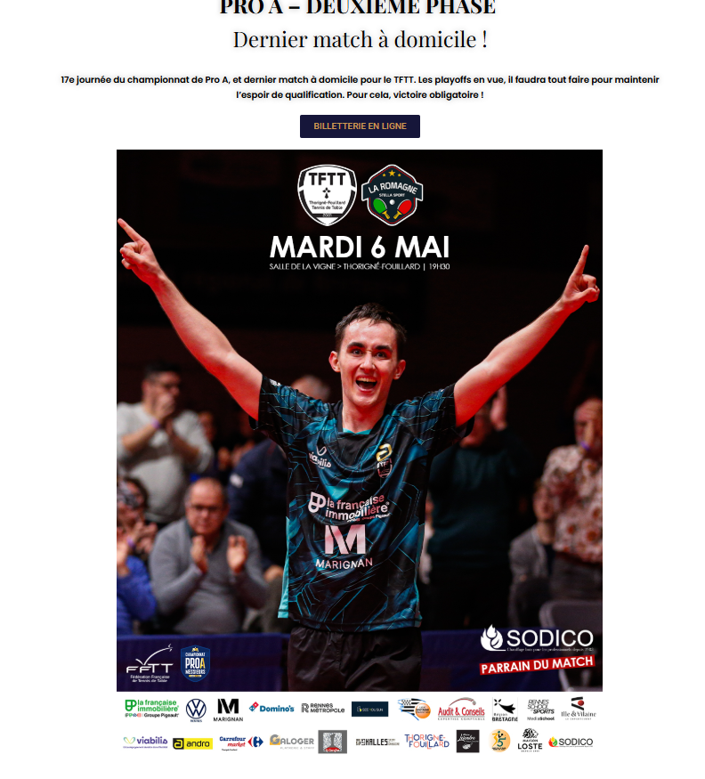 Le club de Thorigné nous invite au match de PRO A contre La Romagne le 6 mai à 19h30 , match décisif pour les play-offs.